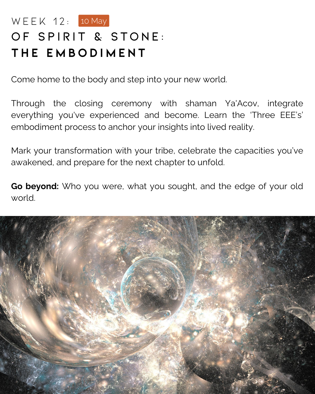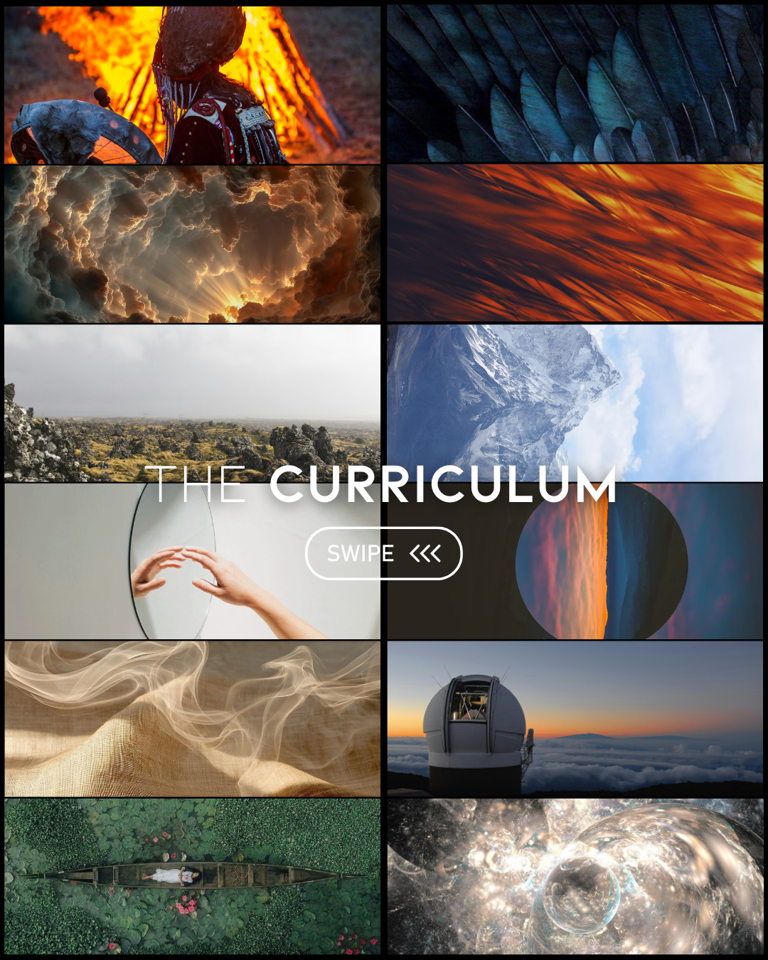 These are not lectures, but immersive sessions that teach knowledge through direct experience (e.g guided journeys)