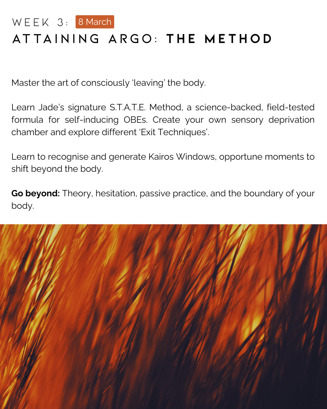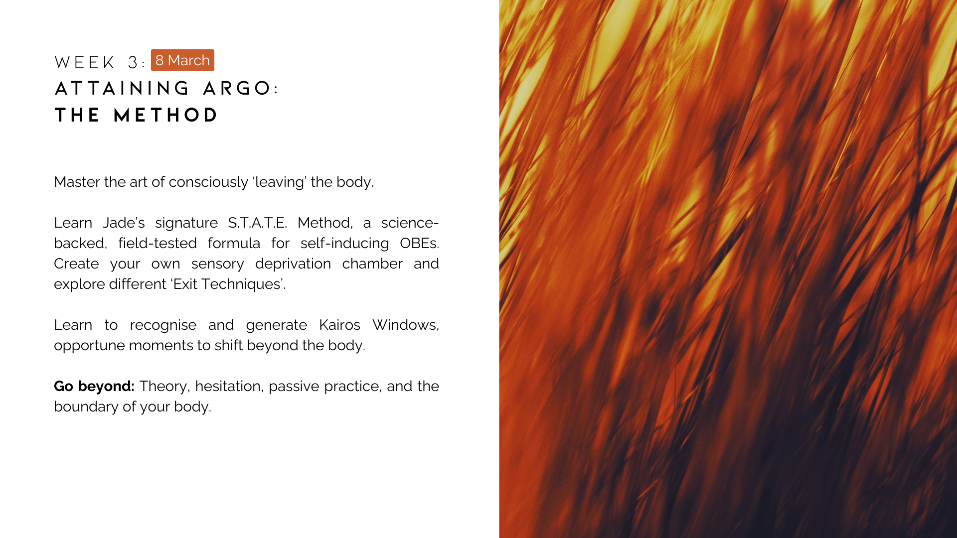 Jade is an excellent OBE instructor who walks the talk. Her enthusiastic style perfectly mirrors the transformative nature of the life-changing experiences she sparks in her audiences.