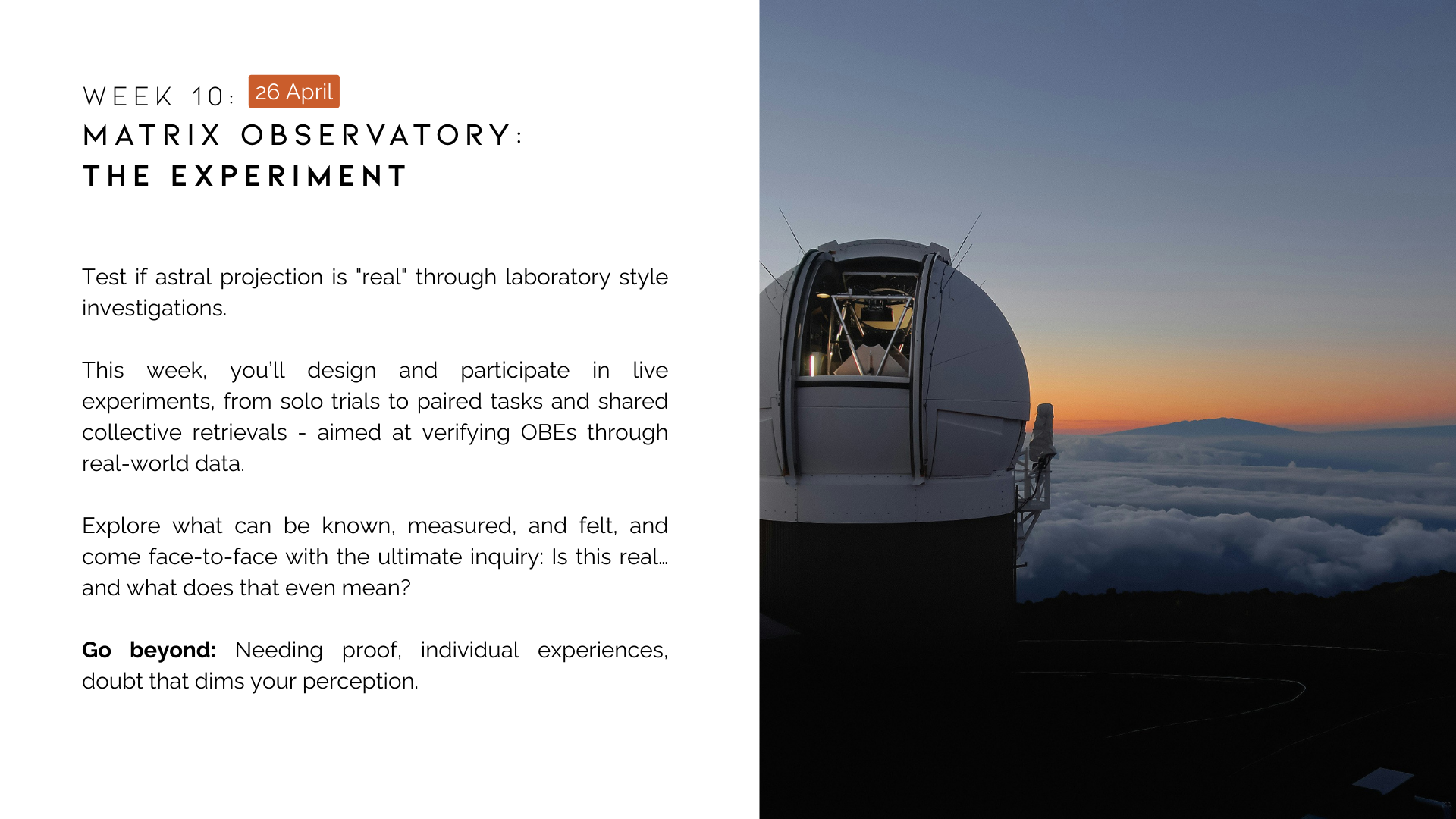 Over 12 weeks, explore Astral Projection for self-growth through neuroscience, spirituality, and myth.